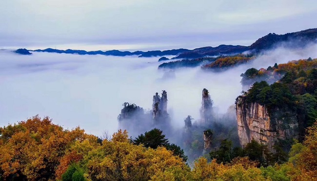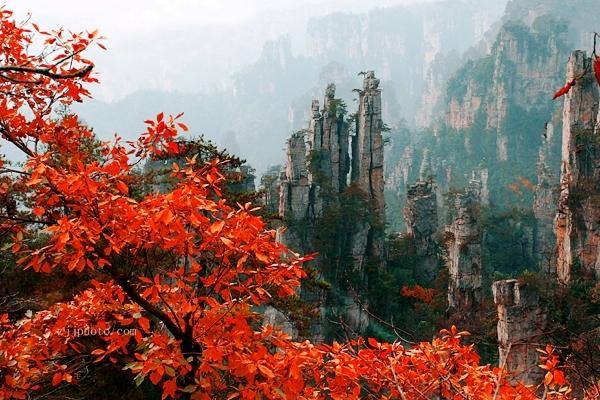 張家界的秋季美景美輪美奐,峰林與紅葉的奇幻天地